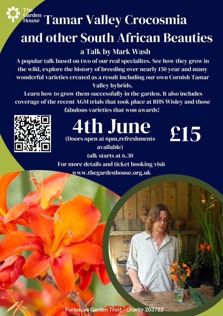 Join us for this exciting event with a speciallist talk on ‘Tamar Valley Crocosmia and Other South African Beauties by guest speaker Mark Wash from Trecanna Nursary.