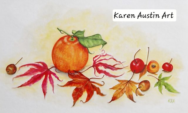 Karen will guide you through the unique watercolour layering process, to produce a painting of the rich and colourful fruits, berries and leaves that Autumn produces but, we quite often overlook as we walk by.